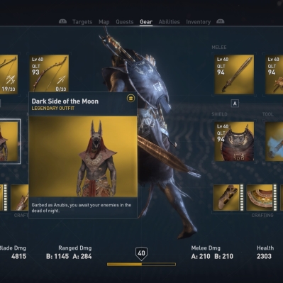 Upon fighting all three gods, players will be rewarded with the highly anticipated Anubis outfit “The Other Side of the Moon” which gives Bayek a whole new otherworldly look, along with the “”. Here are some images of the aforementioned items.